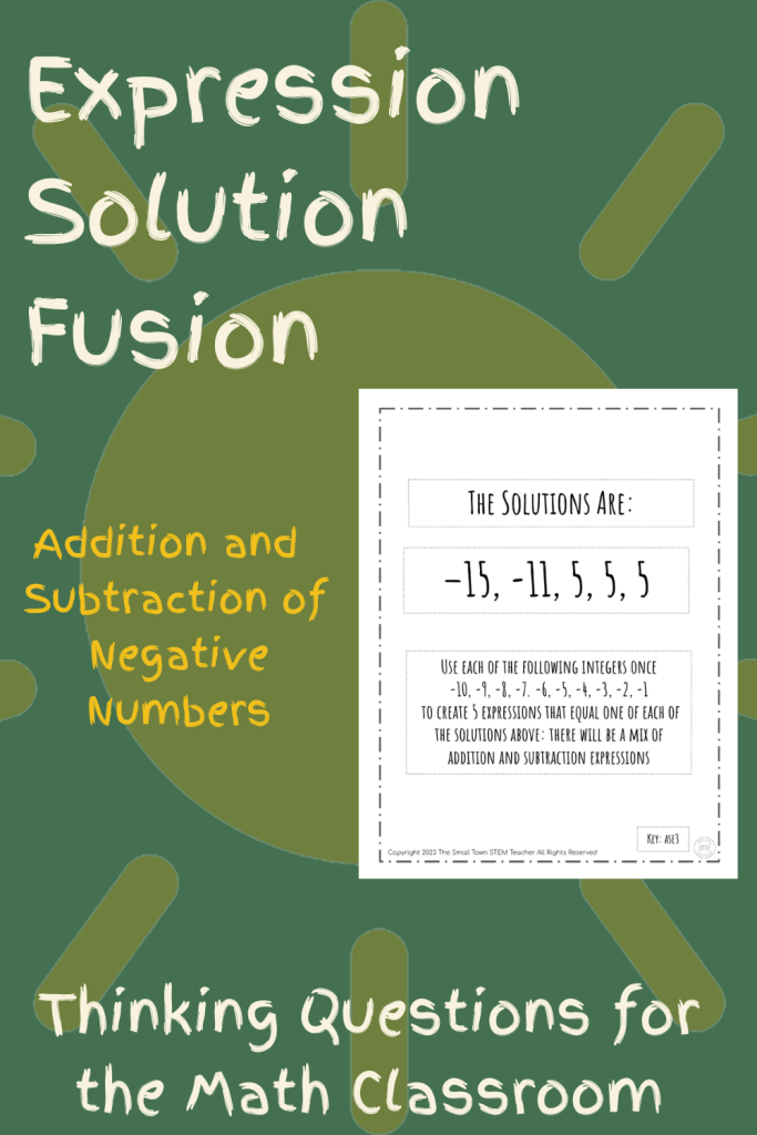 Some groups will obviously work faster than others. Continue to give them problems and avoid telling them how many they have left. If a group finishes the problem sets that you have for them, challenge them to come up with their own Expression Solution Fusion set!
